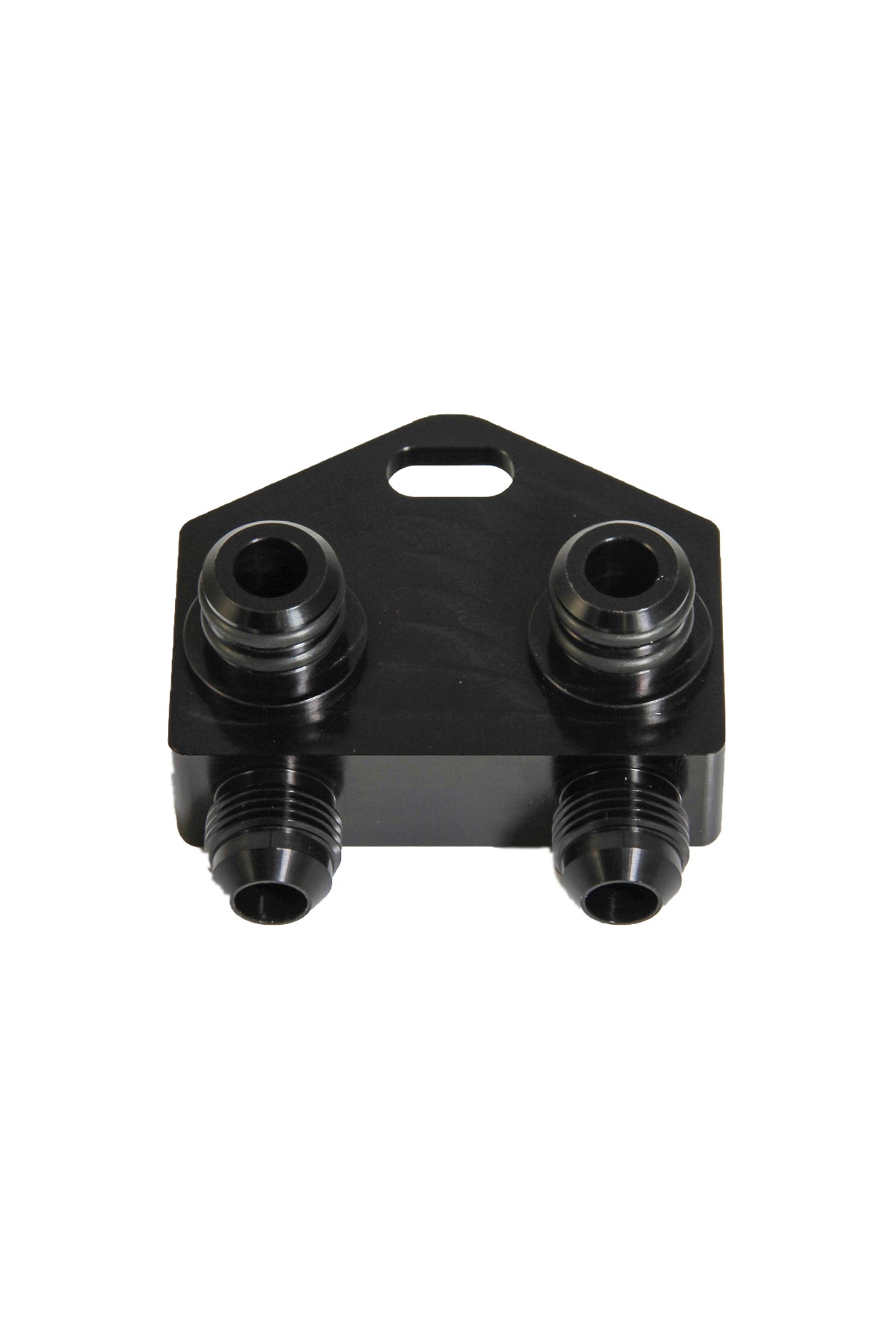 Do you own a Ford 6R80E or a 10R80 and want to ditch those ugly solid tube cooling lines? Or if you're transplanting that transmission into another vehicle, this is the solution for you! This cooler line manifold block allows you to convert over and use any type of flexible line with a -8 AN style fitting. It's simple to bolt on, and looks great.