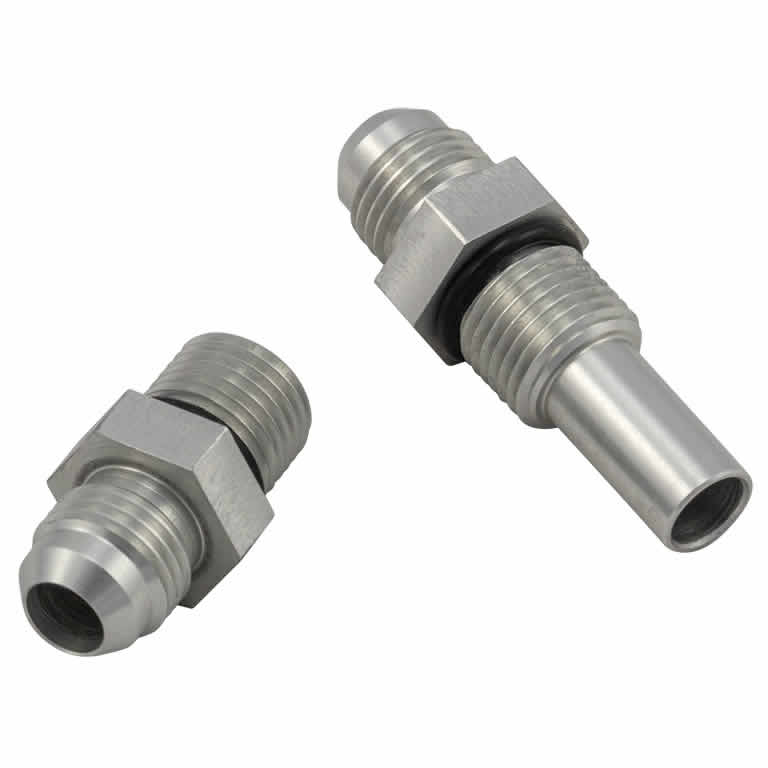 GM 4L80 transmissions came from the factory with one short (front) and one long (rear) cooler adapter. The longer rear fitting is required on the 4L80E for proper cooling and lubrication of the transmission. Check the thread size on your transmission before ordering. Note