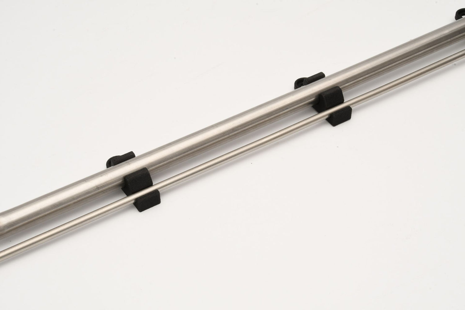 A Clip designed to secure both 1/2” and 3/16” stainless hard lines. Typically used for fuel and brake plumbing.