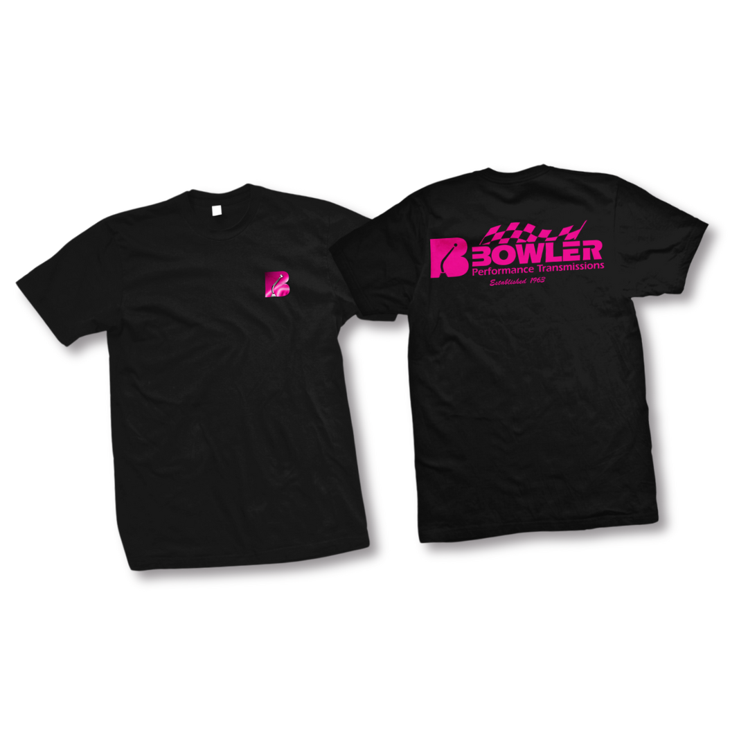 Shift into style with this NEW pink Bowler logo t-shirt!