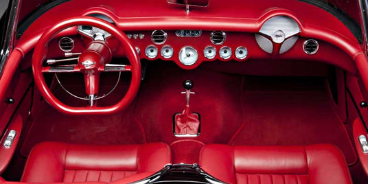 Underneath the beautiful bodywork is an Art Morrison chassis that was specifically designed for C1 Corvettes with modern, all-independent suspension. With Wilwood brakes, Borla Exhaust, and a Ron Davis radiator, the Corvette is set for some smooth cruising. It rides on custom Billet Specialities wheels with two-bar spinners that pay homage to old-school Corvette hubcaps. The Michelin Pilot tires feature redline stripes added by Diamond Back Classic tires.