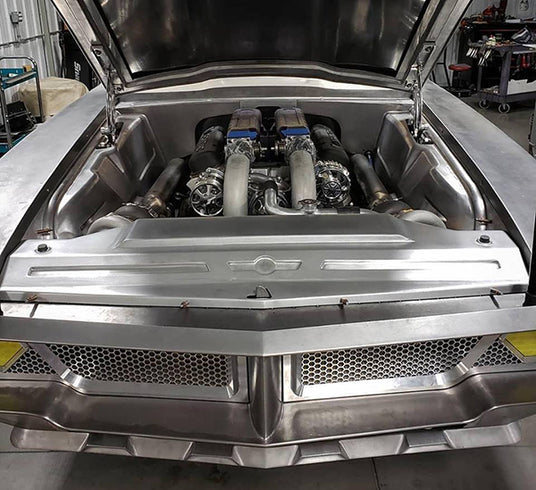 craftsmanship going into this build.  Rarely do you get to see so much detail before the final product is revealed,  but BBT Fabrications continues to wow us with their creativity and skill for metal shaping. You may have already seen this car at the HRIA booth during the 2018 SEMA show sporting  a Roadster Shop Fast Track IRS Chassis, Wilwood Brakes and a tough as nails, Bowler prepped Tremec T56 transmission. To make sure it’s “one-of-a-kind”, BBT is performing extensive body mods with their signature attention to design detail and metalwork as well as hunkering it all over a set of one off, custom wheels. And, for what might just be the most important part- staying true to its roots- powering it with honest-to-goodness Poncho Power, built and twin turbocharged by Butler Performance, one of the best known names in big Pontiac Power.