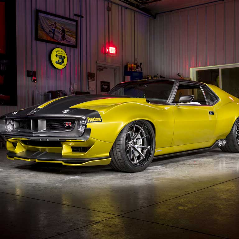 The Jalop Gold and black 1972 AMC Javelin named “Defiant!” you see here was designed and built by Ringbrothers for Prestone. Prestone approached Ringbrothers at last year’s SEMA show and from there they had twelve months to complete this masterpiece to debut it at SEMA 2017. The striking golden yellow color is based off of Prestone’s own color scheme. To help complete this incredible build in time, they used Solidworks digital 3D design systems to render the car’s new panels.